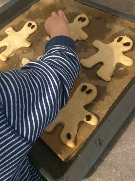 Das hat für die kleinen Kinderhände ganz wunderbar funktioniert, auch wenn es nicht dem klassischen Formen des Weckmanns entspricht.