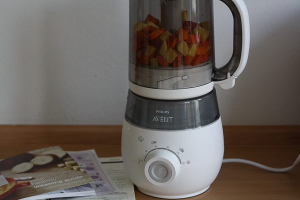 Um die Funktion des „Avent Baby-Dampfgarers“ zu testen, habe ich einen vegetarischen Mittagsbrei mit Karotten, Kürbis und Kartoffeln zubereitet.
